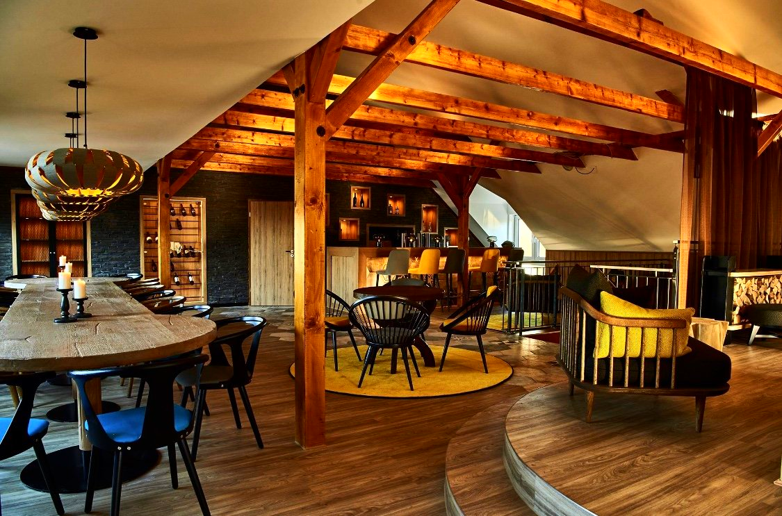 Der Dingsteder Krug vereint die Ästhetik der Vergangenheit mit dem Stil der Gegenwart. Historische Türen, Fenster und Balken des ehemaligen Dingsteder Gasthofes finden sich als Designmobiliar in den Räumlichkeiten wieder. Neu interpretiert bringt die alte Einrichtung den Charme aus früheren Zeiten zurück in den Krug.